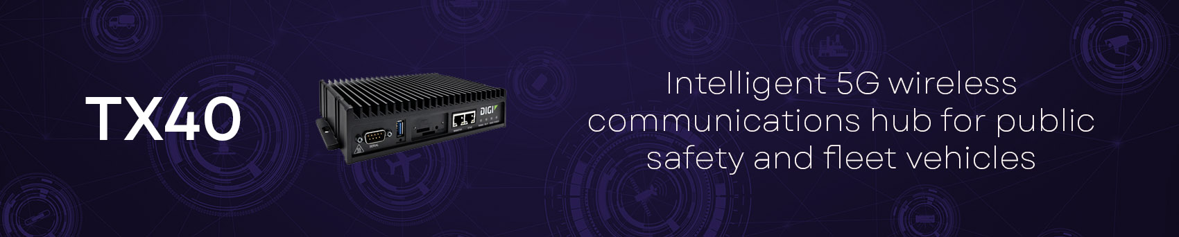 Specially designed for public safety and service fleets, the Digi TX40 5G seamlessly connects the growing list of equipment in a vehicle into a fast and reliable vehicle area network (VAN).t enables you to digitally transform your fleet with latest generation wireless technology that is affordable, easy-to-deploy and centrally managed with Digi Remote Manager®.