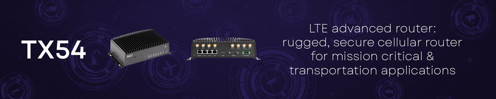 The Digi TX54 is a versatile, powerful LTE-Advanced Cellular Router ideal for mission-critical applications where continuous connectivity and field longevity cannot be compromised. The Digi TX 54 provides secure routing and gateway functionality across wired and wireless communication networks. Local private subnets are bridged across public networks to protect privacy and integrity. With both single and dual LTE-Advanced or LTE-Advanced Pro cellular module options, the Digi TX54 is available with dual Wi-Fi radios to segment passenger Wi-Fi from fare collection, data, video and other applications.