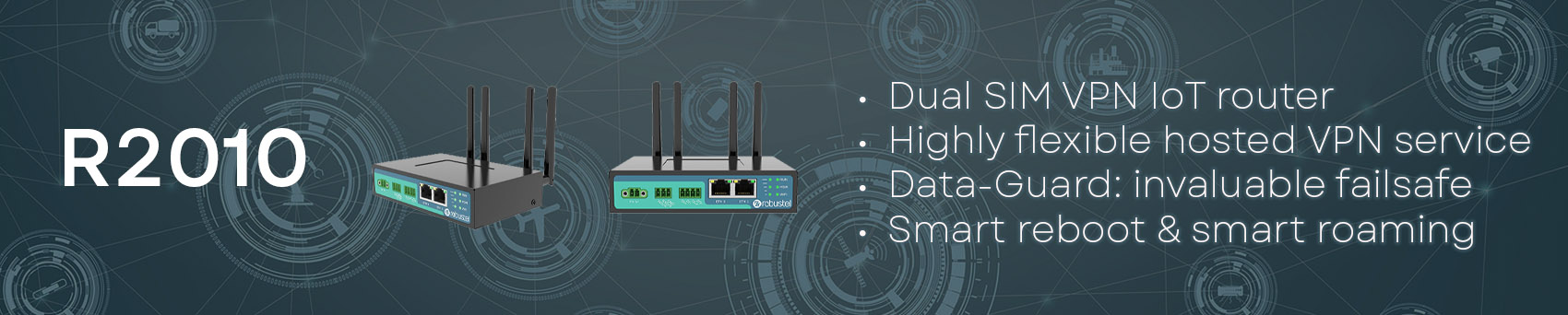 The Robustel R2010 is a powerful, rugged Dual SIM cellular VPN router designed to withstand Industrial IoT applications. The R2010 is was designed on customers’ budgetary, interface and connectivity requirements to create a simple and cost-competitive networking solution for customers deploying IoT solutions in industrial environments such as water, gas, electricity, factory automation and warehousing.