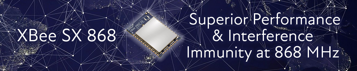 The new Digi XBee SX 868 RF module operates in the 863-870 MHz range, delivering superior performance and interference immunity at 868 MHz.